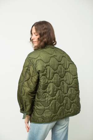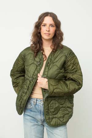 DID YOU KNOW...Now, when you purchase a vintage military piece from Preservation, $10 from each sale will be donated to Vietnam Veterans of America! - Button Closure Title tag Vintage Quilted Military Liner Jacket Size fit Tag size M, relaxed fit.