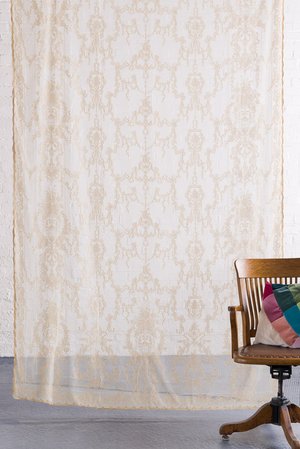 The Linda sheer panel by Prince of Scots offers a modern luxury take on classic design with contemporary tones. Woven in Scotland on centuries-old looms from 100% cotton, it features a rod pocket top and scalloped edges. Color: Gold. Style: 170226.