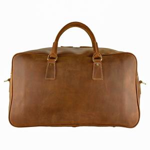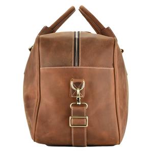 The Wanderlust Roadster Bag meets international carry-on requirements. It is crafted from thick genuine cow leather with quality hardware and durable nylon fabric. This handmade cowhide leather bag measures 20" x 12" x 9" and includes a 55" carry strap. It features an inside zipper pocket, laptop sleeve, cell phone pocket, and passport or billfold pocket. Perfect size for a weekend getaway to the city or the country.
