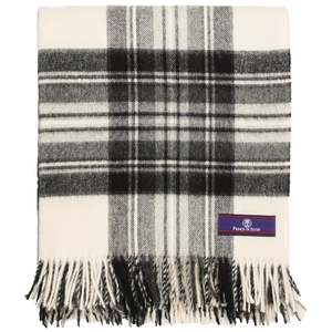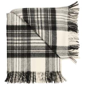 Wrap yourself in the understated luxury of a truly heritage textile. The Highland Tartan Tweed Merino Wool Throw in Dress Grey Stewart from Prince of Scots combines British Isles weaving traditions with the worlds finest merino wool for a throw that feels as good as it looks. Crafted entirely from Woolmark-certified Australian merino wool, this throw is soft, durable, and built to last. Woven in the British Isles and finished with fringed ends, it measures approximately 55" 72" (including a 3" fringe on each end), large enough to layer over a bed, sofa, or favorite armchair. The Dress Grey Stewart tartan pattern adds classic Scottish character to your space while working seamlessly with modern interiors. Use it at home, at the beach, for picnics, camping, or in the car. Its perfect for snuggling up with a good book, cozying up around the campfire, or adding an extra layer on your bed. Care: Professional dry clean recommended to protect the plush merino fiber and ensure a long life. Made in the British Isles. Imported from England.