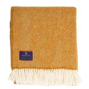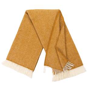 This classic herringbone throw blends traditional British craftsmanship with a fresh modern palette. The refined herringbone weave is timeless and versatile, perfect for year-round use in every room of the house. Woven in the British Isles using 100% pure new wool, this throw is naturally warm, insulating, and breathable. It offers a beautiful drape, soft handfeel, and subtle textural interest. Use it at home on the sofa or bed, or take it to the beach, for picnics, camping, or in the car. Throw measures 59" x 72", including a 3" fringe on each end. The pure new wool is heavy and durable with a rustic feel, and the thicker, fluffier construction adds extra comfort. Woven in the British Isles and imported from England.