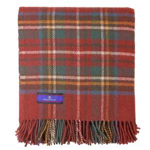 Prince of Scots presents a collectsion of Scottish tartan 100% pure new wool blankets destined to become a favorite. This durable, heavy pure new wool throw measures 59" x 72", including 3 inches of fringe on each end, and is perfect for snuggling up by the fire or reading your favorite novel. The thicker, fluffier construction uses 2 pounds of wool for extra comfort and has a rustic, coarse hand feel. Woven in the British Isles and imported from England. Ideal for the home, beach, picnic, camping, or the car, and a perfect way to add color to any room. Designed for indoor or outdoor use.