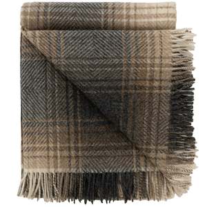 The Highland Tweeds Shetland Lambswool Ombre Throw in Natural by Prince of Scots blends warm, earthy tones into a soft, modern tartan. Woven in the British Isles from 100% Shetland lambswool, this heirloom-quality throw features a refined gradient of camel, weathered stone, heathered grey, soft cream, and deep charcoal, creating a neutral palette that complements nearly any interior. The ombr effect adds depth and movement to the classic plaid pattern, while the brushed lambswool finish provides warmth and tactile comfort. Measuring approximately 54" x 72" including fringe, this generous throw drapes beautifully across a sofa, armchair, or bed, making it a versatile layer for both contemporary and traditional spaces. DETAILS & DIMENSIONS - Fiber content: 100% Shetland lambswool - Dimensions: approx. 54" W x 72" L including fringe - Colorway: Natural Ombre (camel, stone, grey, cream, charcoal) - Pattern: Modern ombr tartan with soft gradient transitions - Origin: Woven in the British Isles CARE INSTRUCTIONS We recommend professional dry cleaning to preserve the natural beauty of Shetland lambswool. Air out occasionally, avoid direct heat, and do not tumble dry. Prince of Scots celebrates the artistry of authentic British weaving. The Highland Tweeds collectsion brings together heritage wool, modern pattern work, and refined colour palettes to create textiles that feel both classic and contemporary.