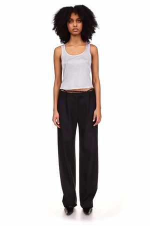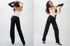 An update on the effortless classic wool trouser. Cocoon fit throughout the legs. Belt Loops with ziperfly closure. If you are in between sizing, we would suggest sizing up for a slouchy fit.
