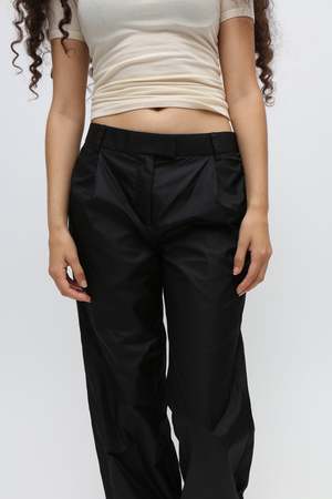 A refresh on the Priscavera cocoon trouser in a breathable material. Featuring a flattering low rise, traditional pleats and a flattering full-length silhouette with tapered hem.