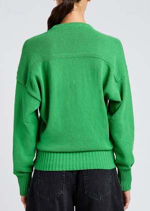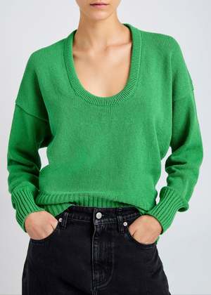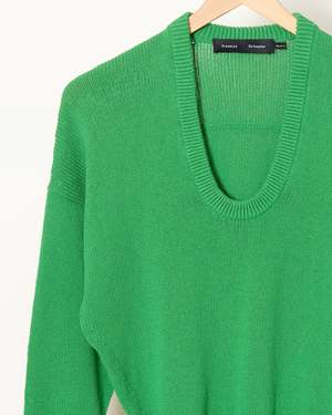 The Niccola Top from Proenza Schouler, crafted in cotton tape knit, is an effortless knit essential with a relaxed, modern attitude. Defined by its drop-shoulder silhouette and exaggerated scoop neckline, it balances ease with subtle structure, finished with wide rib-knit trims for a clean, graphic edge. - Exaggerated scoop neckline for an open, flattering line - Relaxed drop-shoulder construction - Long sleeves with an easy, fluid drape - Wide rib-knit trims add definition and contrast - Soft cotton tape knit with breathable comfort - Model is 5'10" (32" bust and 34" hips), wearing a size small 75% Cotton, 25% Polyamide. Imported.