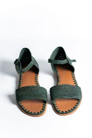 These sandals come in gorgeous forest! - Handmade in Morocco - Upper: 100% Raffia - Sole is made of leather Sizes: 5=36, 6=37, 7=38, 8=39, 9= 40, 10=41 If you are a half size, order the next size up! Impact: Every pair of shoes provides 1 day of fair work for women in Morocco. Ships in 1-3 business Women's Size Length of Shoe (Inches) 5 US (36 EU) 9.375 6 US (37 EU) 9.5 7 US (38 EU) 9.625 8 US (39 EU) 9.75 9 US (40 EU) 10 10 US (41 EU) 10.375 11 US (42 EU) 10.5 Raffia is strips of palm and is a natural fiber that forms to your foot, but it is not stretchy and it's not soft. Raffia shoes are a work of art, each handwoven over 1-2 days. After the upper is woven, the raffia upper part of the shoe is placed on a hard flat wooden sole with an upcyled leather insole. The shoes are originally sized in European sizing. Please refer to our size chart for shoe measurements and please measureyour foot ahead of ordering from big toe to heel. We recommend sizing down if you are a half-size, and the shoe should fit well, particularly if it's a closed-back shoe.