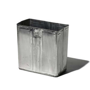 This product is made from reused oil cans. As a result, it may have a distinctive smell that can transfer to other items. Due to the nature of the material, rust, scratches, and dirt may be present. Placing wet items inside may cause further rusting. The design is assorted and cannot be chosen. Available styles and sizes: - Rectangle No.110011R: H11.8 x W11 x D5.9 in - Round 4in No.109992: 4 x H13.7 in - Round 7in No.110004: 7 x H11 in - Octagon No.113951: H9.4 x W8.2 x D8.2 in Material: Steel Made in India.