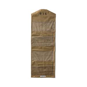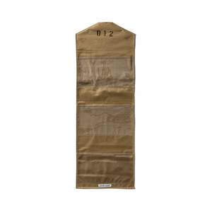 Rubberized fabric hanging organizer with multiple pocket options: - 3 Pockets, No. 114163 - 4 Pockets, No. 114170 - 8 Pockets, No. 114187 Size: approx. W16.5" x H47.2" Material: Polyester (Rubber-Coated), PVC Please insert a hanger into the upper flap part (see the 5th image). Hanger is not included. A regular-size wire hanger can be used, though thick hangers may not fit. This product uses rubberized fabric, which has a strong, distinctive odor that may transfer to stored items or surrounding areas. In hot and humid environments, the rubber may soften, become sticky, or adhere to other items. In cold and dry environments, the fabric may harden and deteriorate. Due to the nature of the vinyl material in the pockets, deterioration may occur over time, including changes in color and texture, and folds may wear down and tear. Please do not place excessively heavy or sharp objects in the organizer or pack it too tightly.