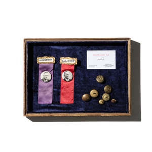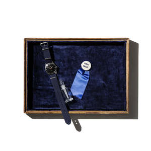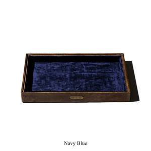 The original idea was to use trays from old jewelry stores to remove gemstones from glass showcases and show them to customers up close. It can be used as a store fixture or as a tray for accessories and valuables at the entrance of your house or in the living room. Available colors: Beige No.110707, Navy Blue No.110714. Size: H 1.6 in. x W 12.2 in. x D 9 in. Material: Used Wood, Rayon, Cotton.
