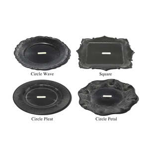 The Decoration Tray comes in a variety of designs to display trinkets or serve hors d'oeuvres. With its marbled surface and lightweight build, these elegant trays are made from recycled materials, giving each a unique coloration. The Oval and Rectangle designs are slightly larger than the others. It is recommended to use a paper doily or cloth between the surface of the tray and food. Area: China Square No.111032 Approximate Size: D 1 in. x W 13 in. x L 13 in. Circle Wave No.111049 Approximate Size: D 1 in. x 13 in. Circle Petal No.111056 Approximate Size: D 1 in. x 13 in. Circle Pleat No.111063 Approximate Size: D 1 in. x 13 in. Rectangle - Large No.111087 Approximate Size: D 1 in. x W 20 in. x L 13 in. Oval - Large No.111094 Approximate Size: D 1 in. x W 20 in. x L 13 in. Material: Recycled PP