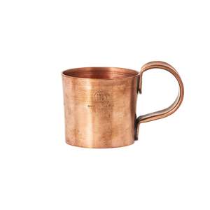 Heavy copper mug with a large, sturdy handle. Size: H 3 in. x W 4.7 in. x D 3 in. Material: Copper. Made by hand from recycled copper in India. Note: Due to the nature of the material, blue-green patina generated by oxidation may occur. The surface will also oxidize with use and aging, and the color and texture will change. Individual differences in color, texture, and handle shape may occur. If you put a hot drink in it, the main body will get hot, so be careful not to get burned. It cannot be used in a microwave oven, oven, or over an open flame. No.302683