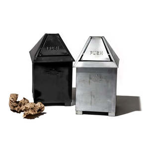 Featuring a black steel finish, this perfectly sized countertop dustbin is great for keeping your beverage area neat and tidy. It features Puebco's signature industrial-inspired look with embossed utilitarian lettering and reclaimed steel. Features a hinge-top opening for easy emptying and clean up. Area: India No.108322 Size: H 12 in. x W 6 in. x D 7 in. Material: Steel