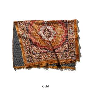 This rug is traditionally used at festivals and parties in India. It is ideal for taking on the go to a concert, music festival, or picnic in the park, and it can also be used in your living space. We suggest using a rug pad if placing this on a slippery surface. Blue No.110615 Gold No.110622 Size: approx. 55"-57" x 82"-86" Color, Design: Assort Material: Front/ Polyester Back/ Recycled Fabric (Polyester, Cotton, Wool, Mixed Recycle Yarns) Padding/ Polyester