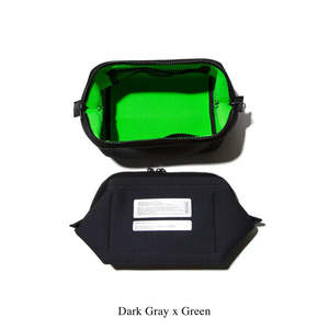 Store and transport your essentials with Puebcos Wired Pouch. The interior features additional mesh pockets for small items, and the pouch is finished with industrial-style branding. It is secured with a zip closure. Available colors: Dark Gray & Green, Light Gray & Orange, Olive & Yellow. Dimensions: Small: 5"H x 7.1"W x 5"D Large: 7.5"H x 11"W x 7.5"D Material: Polychloroprene, Polyester.
