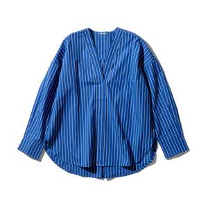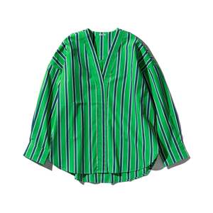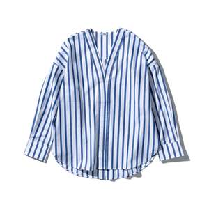 This Cotton V-Neck Stripe Shirt combines everyday comfort with a refined striped design. Made from soft, breathable cotton, it is tailored for a polished look that transitions easily from professional settings to casual outings. Available colors: Blue, White, Green. Chest Width: approx. 25.2" Length: approx. 29.5" Material: Cotton Washing may cause shrinkage or fraying. Dark-colored items may fade or transfer color, so wash separately from other items and hang dry immediately after washing. Do not soak or leave wet. Friction or use in a damp state may cause color to transfer to other items. There may be some weaving scratches or fraying on the fabric.