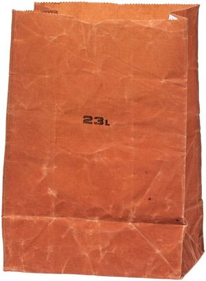 The Waxed Cotton Grocery Bag from Puebco provides a sustainable and versatile alternative to plastic or disposable paper bags. The wear-resistant grocery bag resembles a classic paper shopping bag remade with a hard-wearing cotton fabric that can be rewaxed for continued use. Area: India No. 501154 Approximate Size: H 17 in. x W 12 in. x D 7 in. Material: Waxed Cotton Note: The mouth of the bag is left uncut, so if excessive force is applied to the edge of the fabric, it may tear. This product has a wax coating. The surface of the wax-coated fabric is whitened and has a unique texture with wrinkles and cracks. As you use it, its texture will increase, and the fabric will lose its firmness and become softer.