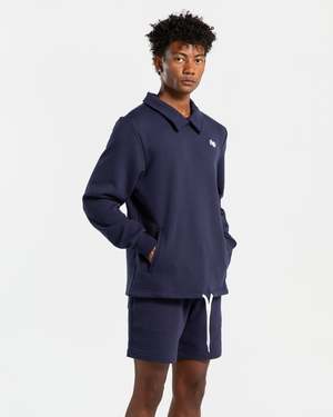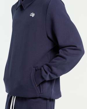 PUMA x NOAH Crew in Navy The Crew is crafted of a thick 450g recycled Frency Terry and features a relaxed, oversized fit. The sweatshirt is detailed with an overlapping folded collar, a drawcord hem, and subtle side welt pockets. A Super Puma badge details the chest and a Noah logo2 can be found above the right cuff. - 100% Cotton. - Made in China. - Machine wash cold, line dry. - 622667 06. David is 6'0 (183 cm) weighs 160lbs (72.5 kg) and is wearing a size M.