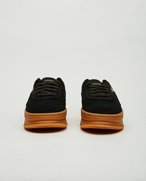The Puma x RANDOMEVENT Deva in black. The Deva takes this collab to new heights with a platform gum rubber sole, silky smooth suede upper and woven tab with RANDOMEVENT's motto: make things worse but cool. Store ID: 37139601 Upper: Suede Sole: Rubber Brush Clean Imported