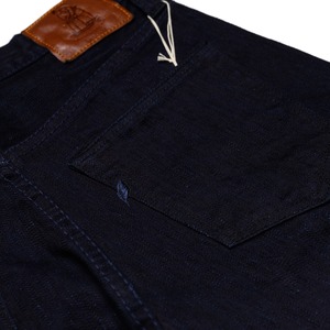 Cut in PBJ's well-loved Relax Tapered cut, these jeans are constructed from the brand's latest proprietary 13oz "Extra Slub" stretch selvedge denim. With an extra slubby character, the vertical texture and variation on this fabric is sure to result in unique fades. Containing 3% polyurethane, these jeans are as comfortable from their first wear as most jeans are on their 100th. - Relaxed tapered fitroomy in the seat and thighs with a taper from the knee to the leg opening - Unsanforized & one wash - Indigo dyed warp and weft - Five button fly - Blue selvedge ID - Custom branded hardware - Hidden rivets - Deerskin leather patch - Leaf logo2 embroidered on back right pocket - Expect these jeans to stretch up to an inch in the waist within the first few weeks of wear, and shrink minimally with cold wash and line dry - 97% Cotton, 3% Polyurethane - Made in Japan Sizing All sizing is in inches and is approximate. For additional assistance with sizing, please email info@blkblu.com Size / Waist / Front Rise / Back Rise / Thigh / Knee / Leg Opening / Inseam 30 / 14.5 / 10.5 / 13.5 / 10.5 / 7.5 / 6.25 / 33 31 / 15.25 / 11 / 14 / 11 / 7.5 / 6.25 / 33.5 32 / 15.75 / 14 / 11 / 7.75 / 6.25 / 33.5 33 / 16 / 11 / 14.5 / 11.5 / 7.75 / 6.50 / 33.5 34 / 16.5 / 11.25 / 14.5 / 11.75 / 8 / 6.75 / 33.5 35 / 16.75 / 11.50 / 15 / 12 / 8 / 7 / 33.75 36 / 17.5 / 11.5 / 15 / 12 / 8.5 / 7 / 33.75 38 / 18.75 / 12 / 15.5 / 12.75 / 9 / 7.5 / 33.75 40 / 19.75 / 12.5 / 15.75 / 12.75 / 9 / 7.75 / 33.75