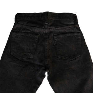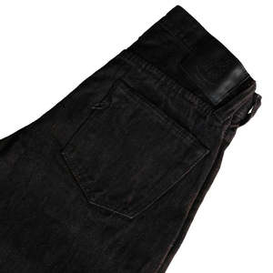 ON PREORDER* A standout piece from Pure Blue Japan, the PER-EX-013-BK is built from 15oz black selvedge denim with an exceptionally slubby texturewoven to create a uniquely uneven, high-contrast fade over time. This washed version shows off early character while softening the break-in process. The slim tapered fit offers a clean silhouette with room in the thigh and a sharp taper through the legperfect for everyday wear with an edge. Key Features: - 15oz Japanese selvedge denim with intense slub texture - Washed for softness and pre-fade character - Slim tapered fit tailored up top, narrow below the knee - Black warp and weft for deep tone and sleek fades - Signature indigofera leaf embroidery on back pocket - Made in Japan