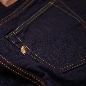 Pure Blue Japan's PER-EX-003 is a regular straight fit, featuring a roomy top block and a full leg from the knee down, and is crafted from a limited run Persimmon dyed fabric. This fabric, their Extra Slub 15oz selvedge denim, features noticeable vertical slub texture, and features a traditional kakishibu dyed weft and the traditional indigo dyed warp. This jean has been rinsed, removing the need to soak the jeans. Expect little shrinkage with additional washing. - One Wash - 15oz unsanforized Japanese Selvedge Denim - Indigo dyed warp, persimmon/kakishibu dyed weft - Button Fly - Herringbone twill pocket lining - Hidden rivets - Blue selvedge ticker - Persimmon/kakishibu colored Leaf - Deer Skin Leather Patch - Raised belt loops - $470 for Size 38 - 42 - 100% Cotton Thread Sewing Construction - 100% Cotton - Made In Japan