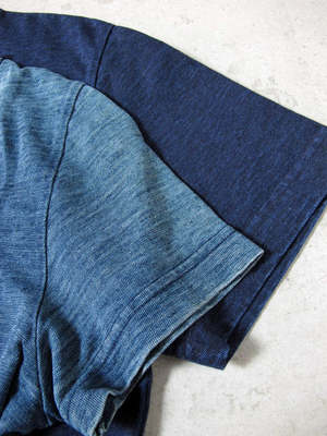 This classic indigo T-shirt has been a favorite since its release and is a proud recommendation from Pure Blue Japan. The greatest feature of this product is the beautiful indigo color gradation that develops with continued wear. The fabric has a soft texture with a slubby feel, making this a simple yet expressive piece packed with attention to detail. *The last photo shows a worn-in, faded sample (in the foreground, approximately 3 years old) layered over a new item.