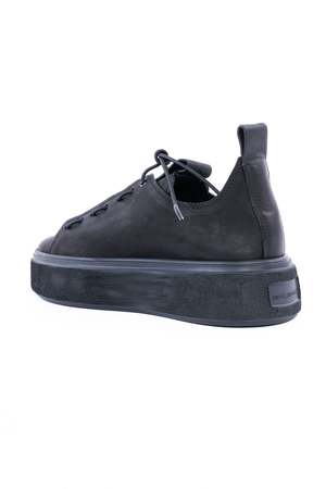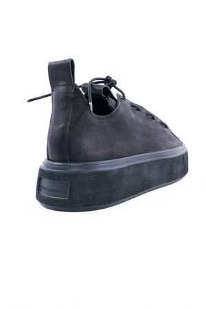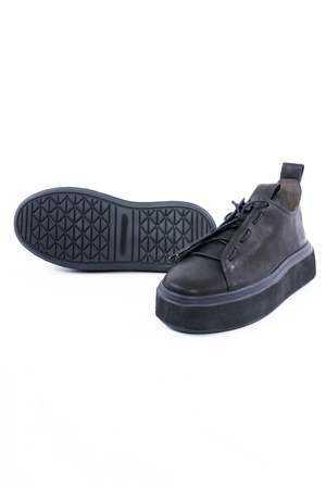 These low top leather sneakers feature a lace up design reminiscent of a loafer, creating a unique and stylish look. With a matte black color, these sneakers offer a laid-back yet polished vibe. The Puro sneakers offer unmatched comfort, making every step feel like walking on clouds. Made in Germany. Care: Any imperfections and discolorations are not defects, but the unique fingerprint of leather's natural beauty. With time, wear, sunlight, water, and love, your leather will change color and texture. Wipe clean with damp cloth and air dry. To restore the shoe's color and shine, use a high-quality shoe polish or leather grease, depending on the type of leather. Leather grease is used for strong/matte leather; shoe polish for smooth and shiny leather. This care should prolong the life of the shoe. About the Brand: Austrian couple Sibylie and Josef Schachi created Puro Secret to bring sophistication and modernism to everyday footwear. The German label specializes in high quality leather craftsmanship and offers both menswear and womenswear.