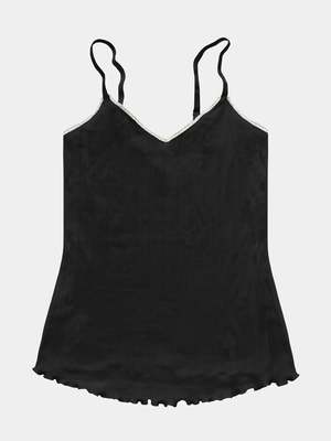 A 100% certified organic cotton pointelle camisole with adjustable straps for a customized fit. The flexible design allows the straps to be worn straight or crossed for additional support. Finished with cotton lace and a scalloped edge. Sewn in Tirupur, India, using cotton grown and spun from farms across India with a fully traceable supply chain.