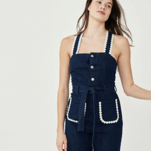 Get ready to jump into style with the Clem Jumpsuit! This adorable denim jumpsuit features adjustable straps for the perfect fit. Comfortable and versatile, this jumpsuit is sure to add a playful touch to your wardrobe. Composition: 99% Cotton 1% Lycra Fit: Body-hugging fit. If between sizes, we recommend sizing up. Slightly cropped length.