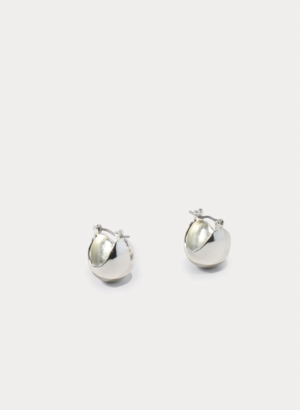 These mini hollow oblong hoop earrings have hinged fastening for pierced ears. Sold as a set. MATERIAL Silver Plated Brass COLOR Silver SIZE 13mm long
