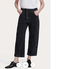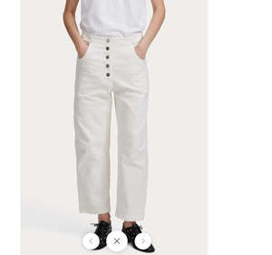 The Elkin Pant, one of our all-time favorites, returns this season in our overdyed Pomona Denim. Designed with an adjustable back buckle tab so you can wear it at your preferred waistlinebe it low, hip-level, or cinched at the waist for a tailored silhouette. Angled darts give the leg a subtle cocoon shape, culminating in a chic cropped length. - 100% Cotton - Made in USA