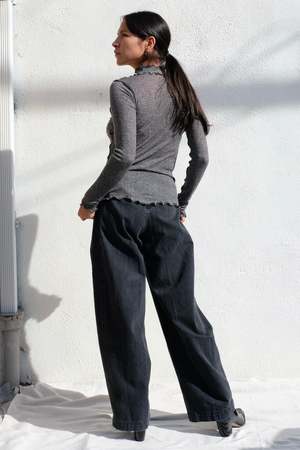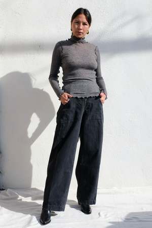 Relaxed-fit high-waisted jeans featuring a discreet back zipper and rear darts for a flattering fit. Cut to a wide-leg silhouette, offering a relaxed and spacious feel, with deep square pockets and unique coin pockets for functionality. Details: - 100% Cotton - Rear zipper closure - Four front pockets - Made in USA Nykita is 5'7, size 2/4, wearing the 4 Styled with Eliza Faulkner Jane Turtleneck *Studio photos Courtesy of Rachel Comey About the brand: Rachel Comey is an American independent fashion designer based in New York City and is the founder of Rachel Comey, her eponymous clothing, shoes, and accessories brand that grew out of the downtown arts scene of early 2000's New York.
