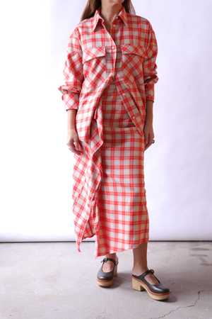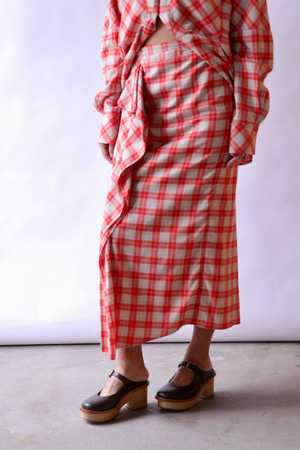Midi skirt featuring a faux wrap-style design with a ruffled detail down the front for added texture. Cut from lightweight plaid flannel. A concealed side zip fastening ensures a smooth fit. Pair with the matching top. - Concealed side zipper - Machine wash cold - 100% Cotton - Made in USA