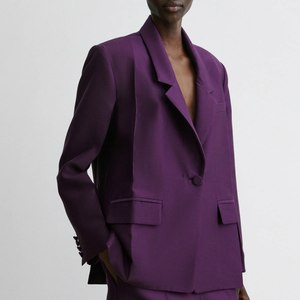 Single-breasted blazer cut from structured wool with a notched lapel collar, tailored shoulders, and a relaxed, boxy fit. Detailed with a single button front closure, double flap front pockets, and a welt chest pocket. Finished with buttoned cuffs and a vented back hem. Wear with the matching Berenson Pant to create a suit. Single button front closure Flap front pockets Welt chest pocket Buttoned cuffs Back vent Style #261W-728-T1818 92% Wool, 8% Silk Made in USA.
