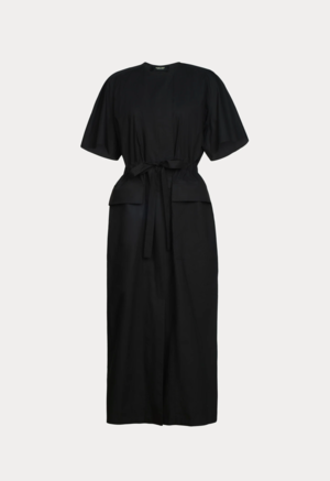 Effortless and modern, this midi dress moves with you, balancing clean lines with relaxed ease. The adjustable drawstring waist lets you shape the silhouette, while oversized front pockets add a subtle utilitarian edge. Cut from smooth, durable organic cotton with a crisp, slightly structured feel, it has a quiet sophistication perfect for everyday wear. Care Fabric: 100% Organic Cotton Care: Gently hand or machine wash cold. Do not bleach. Hang to dry. Iron at low temperature. Details Midi length Relaxed, slightly structured fit Round neckline Short sleeves Snap concealed front opening Adjustable drawstring at waist Oversized front flap pockets Side seam pockets Unlined Origin: Made in USA.