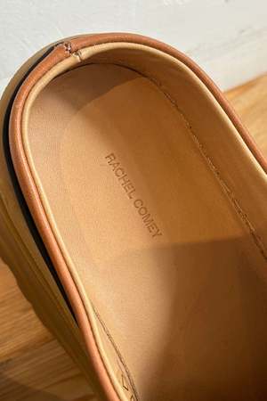 Slip-on leather mules inspired by our favorite Barla Boot, featuring a lightweight construction with a molded tread outsole and chunky sole. Details: - 100% Leather - Made in Portugal About the brand: Rachel Comey is an American independent fashion designer based in New York City and is the founder of Rachel Comey, her eponymous clothing, shoes, and accessories brand that grew out of the downtown arts scene of early 2000's New York.