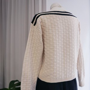 Long sleeve sweater crafted from basketweave knit that creates texture and dimension. It features a boat neckline with contrasting stripes. Designed for a slim fit. This item runs true to size. Made in Peru. 100% Pima Cotton. Length: 52 cm. Bust: 49 cm. Hem: 47 cm. Size S on mannequin. - Styled here with ALIGHIERI THE BABY PEGASUS NECKLACE, RACHEL COMEY SINK PANT IN BLACK HEAVY LINEN and REJINA PYO EDIE PUMP IN LEATHER SHINY NAVY. With more than 20 years in the industry, Rachel Comey's aesthetic is full of empathy and art. The brand is based on the idea that feeling good in a garment is just as vital as looking good in it and each piece is a statement of self-confidence and feminine power, making you want to wear them both in your every day looks or in the most special occasions.