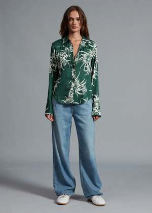 The versatile nature of the Cleo Shirt makes it ideal for any occasion, from a day at the office to a night out with friends. The button-down front and classic collar give it a timeless look, while the relaxed fit makes it comfortable enough to wear all day. The beautiful green multi-floral print is eye-catching and unique, making it easy to pair with any neutral-colored bottoms, from jeans to skirts.