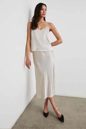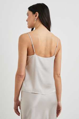 Made from lightweight and ultra-soft crepe, the Paola camisole by Rails is a flattering luxury piece that looks great on its own and is ideal for layering. It features a classic fit with thin adjustable straps. Details: - Straight fit - V-neckline - Adjustable straps - Front body length: 14" (measured from size S) - Color: Ivory - Model wears size S - 55% Rayon, 45% Viscose - Dry clean only