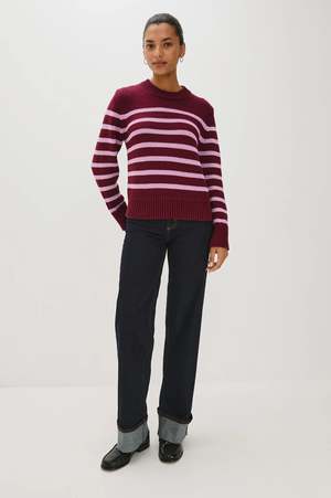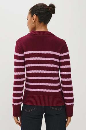 The Alise sweater by RAILS is an ideal mid-season piece and a lighter alternative to the classic wool sweater. Crafted from pure cotton, it features unique ribbed finishes at the cuffs and collar, along with a traditional crew neckline. Pairs perfectly with your favorite jeans. Details: - Straight fit - Crew neck - Front length: 21" / 53 cm (measured for size S) - Color: Mulberry Stripe - 100% cotton - Dry clean only