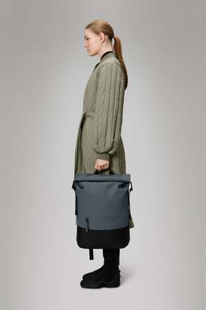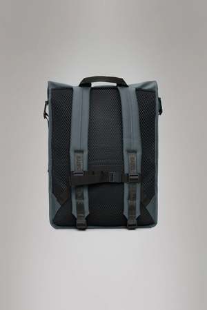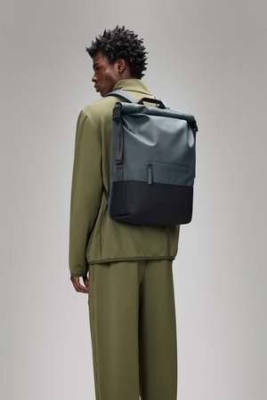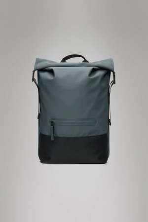 The Trail Rolltop Backpack is a sporty and utilitarian city staple, perfect for commutes on bike or foot. To protect essentials from rain, fold the rolltop into a tight scroll and secure using the signature carabiner. It also features an internal padded laptop pocket, front zip pocket, and padded back panel. The design is finished with a buckle-fastened chest strap for a secure ride-proof fit. Trail Rolltop Rucksack is cut in Rains signature waterproof PU fabric, engineered for carrying strength, durability, and a smooth feel.