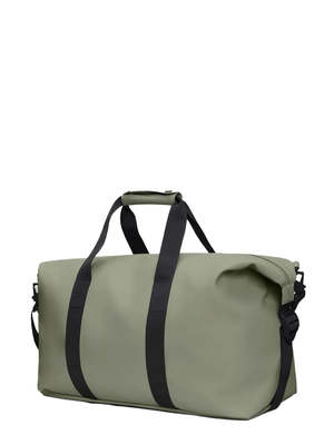 The Hilo Weekend Bag from Rains is a must-have overnight companion. This travel favorite merges Rains' renowned waterproof fabric with distinctive strap and hardware elements for a clean, modern look. Unzip the full-length, coated zipper to reveal an expansive single compartment, generously accommodating clothing, tech, and other essentials. Side-mounted compression straps keep everything secure. The design features webbings carry handles with a comfortable sleeve and attachment rings for the included detachable shoulder strap. - 100% polyester with polyurethane coating - Water column pressure: 8000mm - Measurements: H27 x W52 x D26cm / H10.6 x W20.5 x D10.2 inches - Volume: 37 liters / 9.6 gallons - Coated zip closure - Single main compartment - Webbings compression at each end - Detachable adjustable webbings shoulder strap - Webbings carry straps with handle wrap - Designed to withstand light to moderate weather conditions
