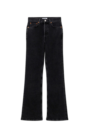 Our version of the decade's classic bootcut with a full-length inseam. Features a minimal-stretch black fabric, a classic button fly, and a finished hem. DETAILS: - Fabric: 95% Cotton, 4% Elasterell, 1% Lycra - Model information: Model is a size 25 and is wearing a size 25 - Care: Machine wash cold, do not bleach, tumble dry low, warm iron if needed, or dry clean - Type: Jeans - Denim color: Black - Denim wash: Dark wash - Style name: Full Length - Pant rise: High-waisted - Pant style: Flare / Bootcut