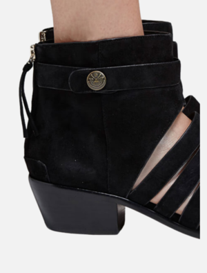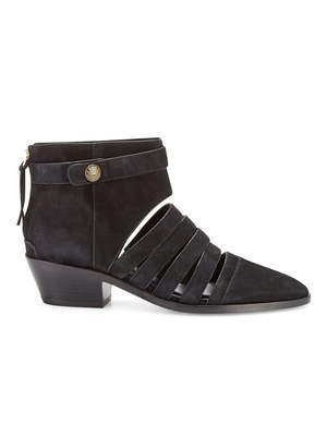 We've got mad love for the perfect transeasonal shoe. The Abbott Bootie from Rebecca Minkoff is the ultimate hybrid - 1/2 boot 1/2 sandal. Subtle suede straps allow your feet to peek through while the covered toe and ankle offer some production. Featuring a low-stacked heel for comfort, back zip closure and gold pressed button detail. FABRIC OR COMPOSITION Suede outer, Leather inner and sole SIZE AND FIT The Rebecca Minkoff Abbott Bootie in Black is true to size Back zip access Heel Height: 2in / 5.1cm BRAND After releasing the Morning After Bag in 2005, Rebecca Minkoffthe designer and the brandbecame an overnight international sensation. Today, the trailblazing lifestyle label includes everything from luxury apparel and handbags to accessories and athleisure gear, all with Rebecca Minkoffs signature downtown romantic style. Designed for the smart and savvy risk-taker, Rebecca Minkoffs pieces are durable, versatile, and the definition of New York metropolitan flair. Inspired by urban living, each Rebecca Minkoff collectsion features feminine styling with just the right amount of ruggedness. Not surprisingly, her designs are coveted by street-style icons and A-list celebrities all over the world. Were thrilled to bring you the latest Rebecca Minkoff apparel and accessories here at Order of Style. Add some edge to your wardrobe when you shop our selection of Rebecca Minkoff handbags, dresses, and more.