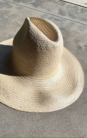 Freshly restocked ! A fantastic hat with large brim to keep you covered up from harsh summer rays. Made in Italy by renown hat designer Reinhard Plank. We love his chic shapes and they work wonderfully with our collectsion! A true Favorite! Color: Natural - Handcrafted from 100% Straw - Made in Italy