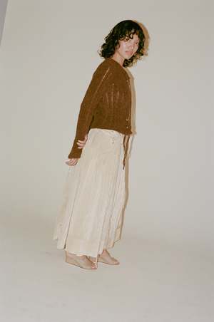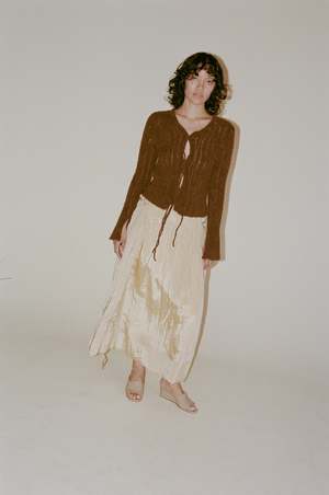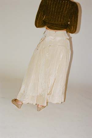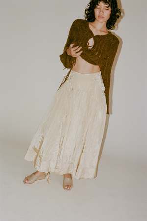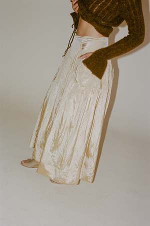 Rejina Pyo Anika Skirt in Sand - The Anika Skirt in Viscose Blend Sand features a flowy silhouette with gathered details and subtle string accents. With the signature style, pair it with luxurious knitwear or elegant top for formal occasions. - *color most closely resembles last 4 photos - Viscose 82% Nylon 18%