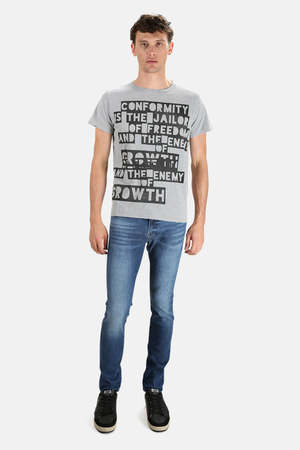 - Color: Heather Grey - Jersey cotton fabric - Front graphic - Slim fit - 100% Cotton - Made in Japan - Hand wash cold * Model is 6'1" wearing size M **Japanese sizing, size up for the best fit Designer Remi Relief