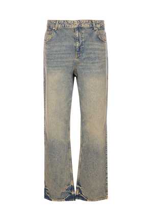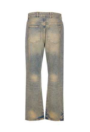 Men > Clothing > Jeans Represent blue cream straight jeans with five pockets, a plaque logo2 on the back, and a vintage effect. Composition: 99% Cotton, 1% Elastane.