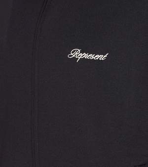 Men > Clothing > Coats & Jackets > Blazers Represent black track jacket with zip closure at front, embroidered logo2 on the front, lateral pockets, and lateral band details. Composition: 100% Cotton.